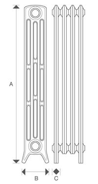 CRANE Cast Iron Radiators in 4 Columns are available in 5 heights. This is the tallest of this popular series of cast iron radiators at 960mm or 38 inches giving a huge heat output making a striking feature in any room.